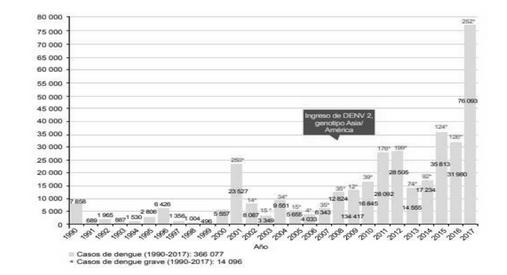 Entre el 2013 y 2017 se han reportado anualmente entre 2509y3421casosdemalariaporPlasmodiumvivaxyenese mismo periodo entre 410 y 1286 casos de malaria por Plasmodium falciparum, así como 2965 casos de dengue (aedesaegypti).