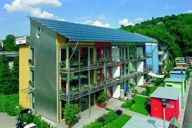 La mayor parte del suelo se adaptó al transporte público y propuso la utilización compartida del automóvil, participando unos 300 vecinos y unos 25 coches, Como resultado se destinan 0,7 plazas de parkingporvivienda