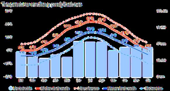 Resulta fundamental la consideración de las condiciones climatológicas como principal condicionante para la adaptación y mitigación al cambio climático. Para ello se parte de recopilar la información relativa a las temperaturas medias mensuales, máximas y mínimas registradas en los últimos 30 años.