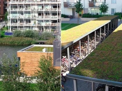 Por EJEMPLO, LA RECOLECCIÓN DE AGUA DE LLUVIA A TRAVÉS DE LOS TEJADOS VERDES Lo CUAL PERMITE ALBERGAR MÁS VEGETACIÓN Y GENERAR OXÍGENO.