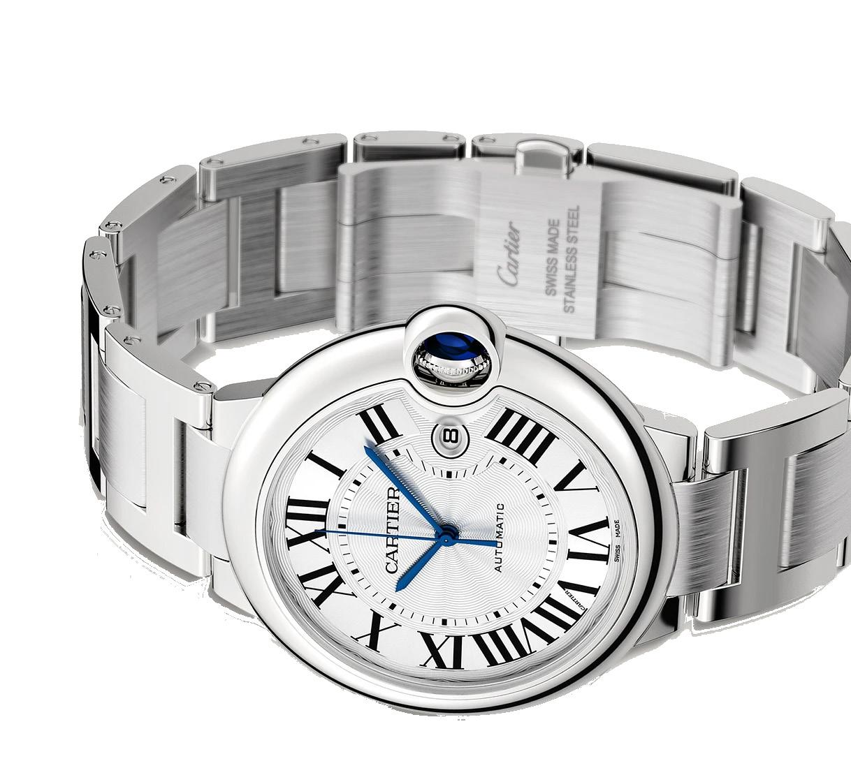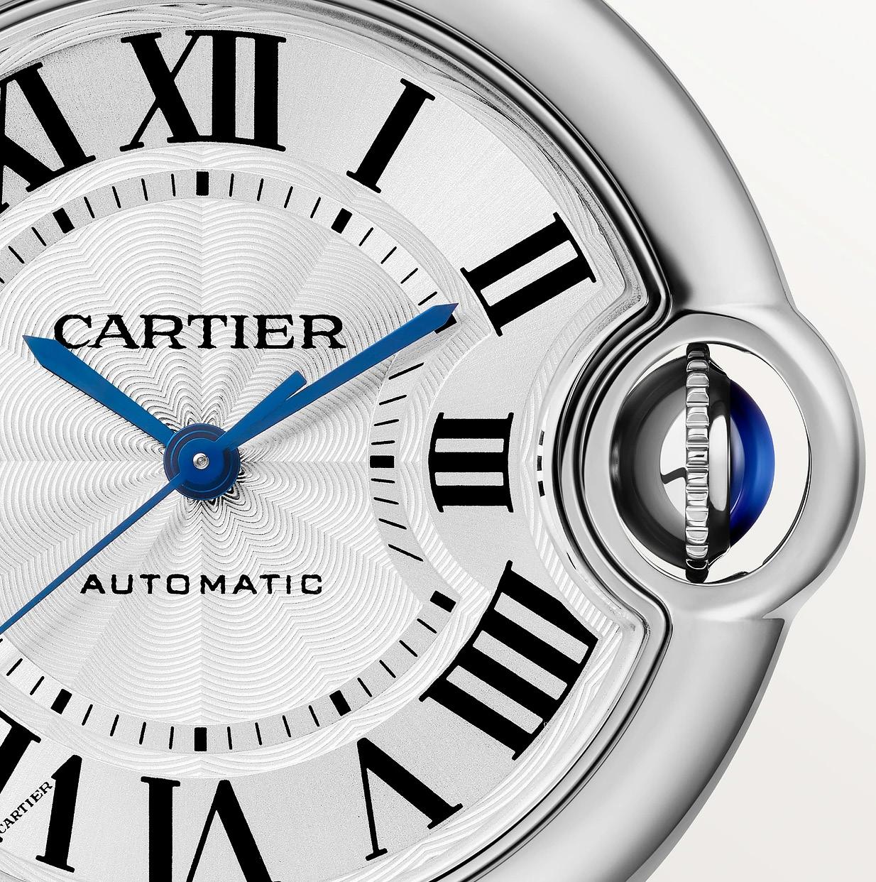 The Ballon Bleu de Cartier was launched in 2007, adding a fresh, contemporary twist to Cartier’s prestigious lineup. The name “Ballon Bleu” translates to “Blue Balloon,” inspired by the unique blue sapphire cabochon crown that appears as if it’s floating on the side of the watch, encased in a protective arch. The soft rounded shape of the Cartier Ballon Bleu also offered a nice contrast to the longstanding rectangular models in the Cartier watch range like the Cartier Tank and Cartier Santos. It also makes it a very comfortable watch for day-to-day wear.