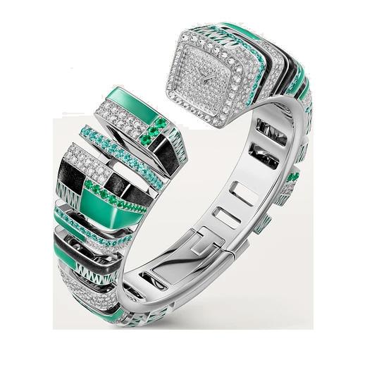 The result of Cartier’s work on shapes, this watch combines savoir-faire from Cartier watchmakers and jewellers alike.