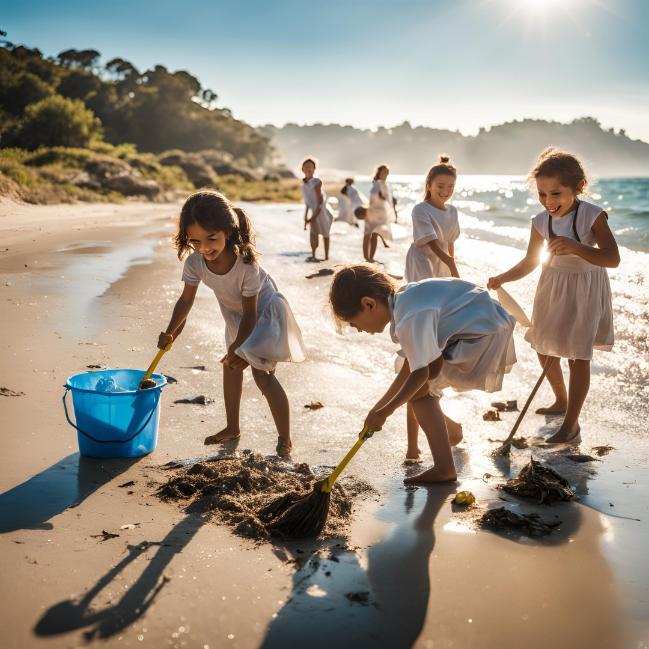 Luna al ver esto, decidió actuar de manera propia y creo un grupo de amigos llamado “Los Guardianes del Mar”. Juntos, organizaron limpiezas en la playa, construyeron refugios para tortugas marinas y crearon un jardín de algas para eliminar los contaminantes del agua. Imagen generada con inteligencia artificial.
