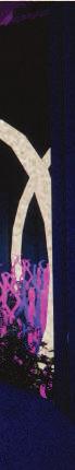 1. Glowing flora. | 2. Woodsprite, symbols of blessings and connection. | 3. The Pandora’s Tree of Souls. | 4. Vines and birds of paradises. | 5. Holographic flooring.