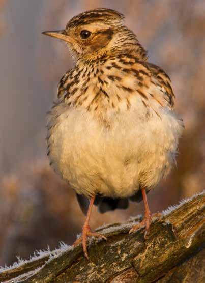 Woodlarks are true songbirds. In a long, spiralling flight, they serenade their audience with a melancholy tune, easily recognised by their distinctive lu-lu-lu call.