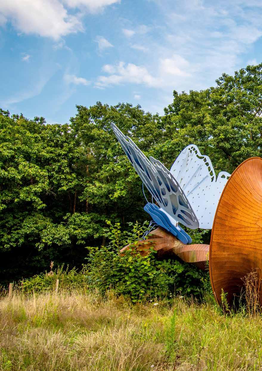 De la forêt à la scène ? Cela pourrait vous surprendre ! Près de la zone sportive d’Eksel, le sentier débouche sur un théâtre de verdure. À partir de saules et d’autres essences de nos forêts, l’artiste paysagiste Will Beckers a créé une scène impressionnante pour les vedettes du Parc National du Bosland. Par beau temps, elle accueille jusqu’à 100 personnes. Qu’aimeriez-vous ressentir avec ce public et les habitants de la forêt ?