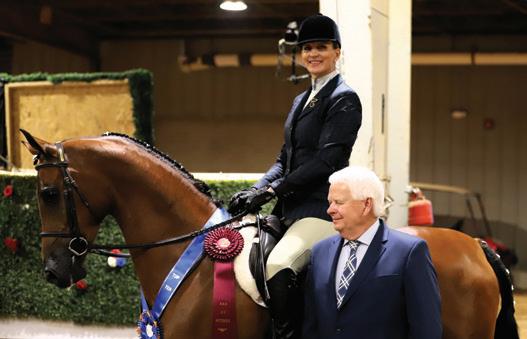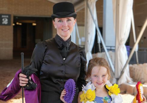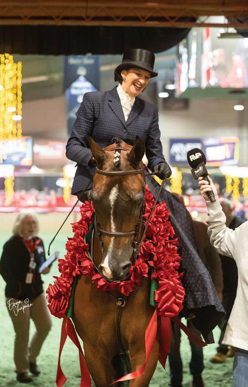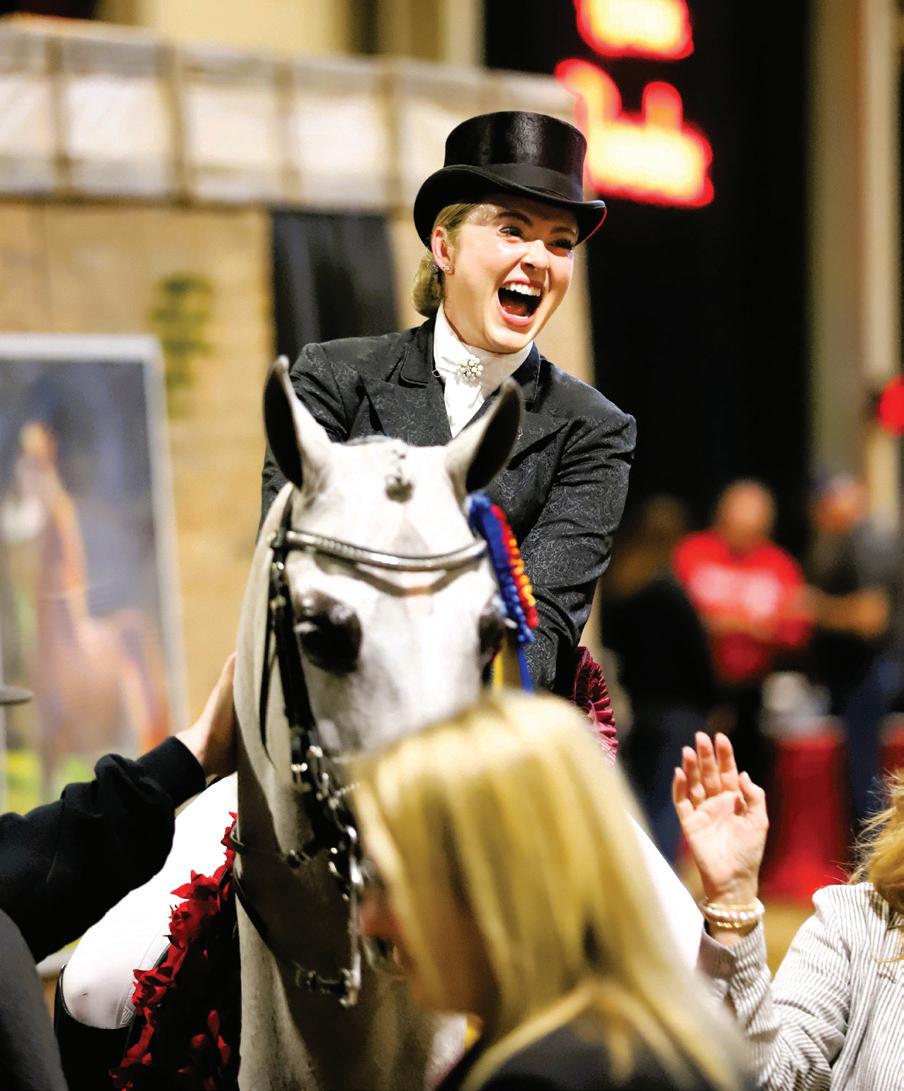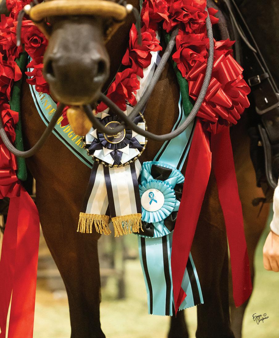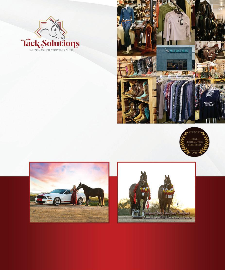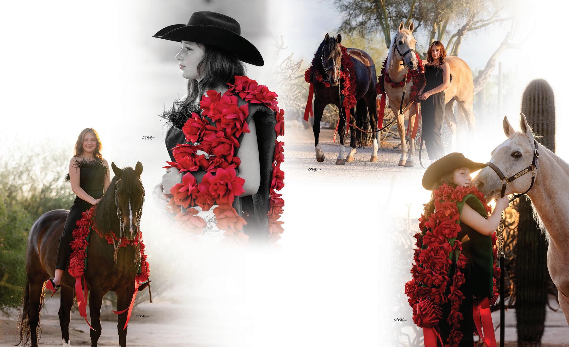 need for another surgery, so although she’s bringing a string to Scottsdale, this year’s show will look a little different. “For the first time ever, I’m doing Sport Horse,” she shares. “It’s a little less stressful while I’m not at full strength.” She’s still supervising an incredible 41 classes, but has eased away from the hotter English horses for now and is focusing instead on Western Pleasure, Dressage, and Mounted Native Costume. Eddie surprised her with an electric bicycle, too, which makes zipping across the show grounds much easier.