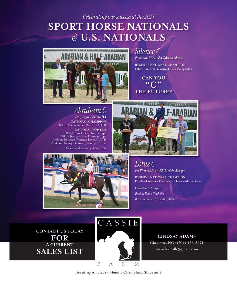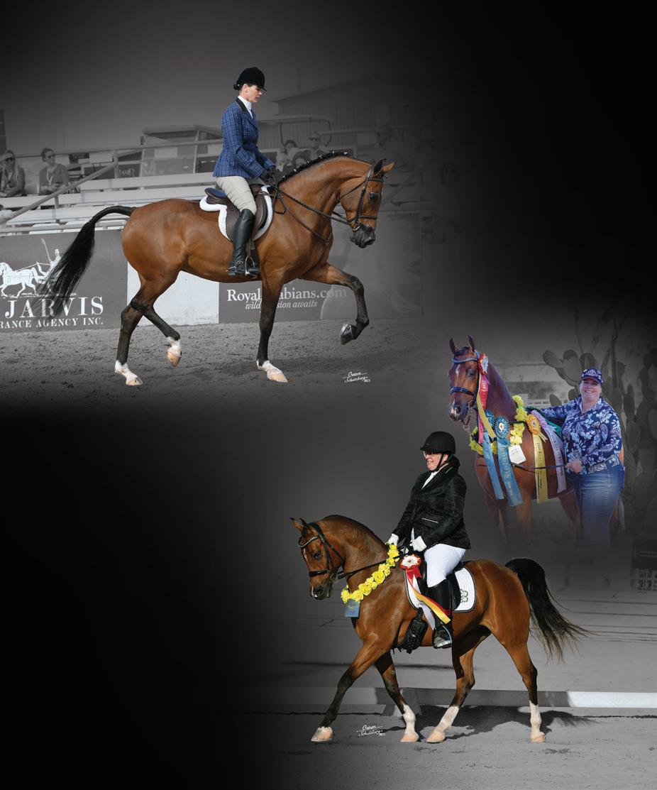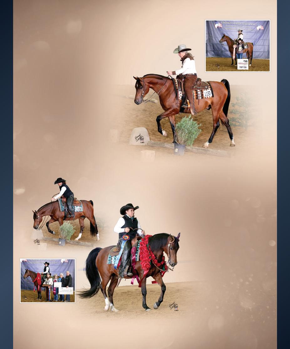Top Left: Snapchatter PF trots high with Theresa Spencer in the irons. This gifted duo ribboned in the Half-Arabian English Pleasure AAOTR and AAOTR 50-andOver Championships.
