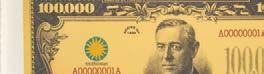 Have you ever dreamed of holding a $100,000 bill in your hand? How about a group of bills that includes $100,000, $10,000, $1,000 and $100 bills? Now you can, with these gold currency reproductions from the O cially Licensed Smithsonian® Series-1934 100 mg 24-Karat Gold Certi cates, which includes all four of the above Notes!