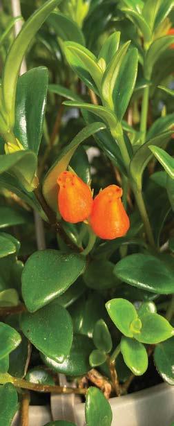 The dark-green leaves provide a backdrop for orange flowers that resemble tiny goldfish. The flowers on a Goldfish plant may be red or yellow. Native to southern Mexico, Brazil, and Costa Rica, this plant comes in more than 25 di erent varieties.