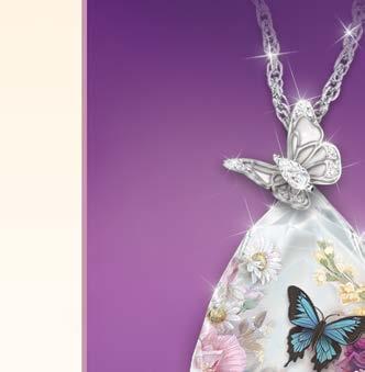 Butterflies are more than just winged wonders that fill us with delight when we see them flutter by. They are also a symbol of the transformation from this life to the next, reminding us that those who have gone before us are still close to our hearts. Now celebrated artist Lena Liu draws from the splendor of her own garden masterpieces to create a comforting tribute that will brighten your spirits when you miss a loved one the most. The “Until We Meet Again” Crystal Pendant features Ms. Liu’s officially licensed image of a gorgeous blue butterfly encased in a teardrop crystal. A sterling-silver plated sculpted butterfly bail perches atop the pendant, sparkling with a white crystal. Turn the pendant over to see gentle words of comfort: Goodbyes are not forever, goodbyes are not the end. They simply mean I’ll miss you, until we meet again. Your pendant is complete with an 18" chain, a soft jewelry pouch, and a Certificate of Authenticity.