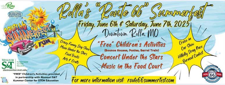 June 6, Rolla, Route 66 Summerfest, Downtown Rolla, 573-578-7165