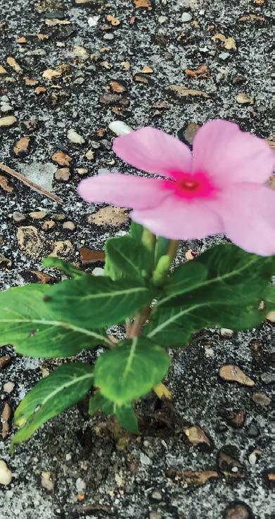 I fondly remember a lone vinca plant that appeared one summer in a crack in the concrete parking lot of my former o ce building.