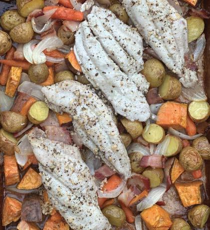 Place the pan back in the oven for another 20-30 minutes, or until the catfish is completely cooked, and carrots and potatoes are tender.