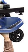 The first thing you’ll notice about the Zinger is its unique look. It doesn’t look like a scooter. Its sleek, lightweight yet durable frame is made with aircraft grade aluminum so it weighs only 47.2 lbs. It features one-touch folding and unfolding – when folded it can be wheeled around like a suitcase and fits easily into a backseat or trunk. Then, there are the steering levers. They enable the Zinger to move forward, backward, turn on a dime and even pull right up to a table or desk. With its compact yet powerful