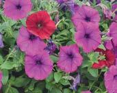 The Red Velour variety has deep, velvety red flowers. Another standout is the Easy Wave Violet with purple blooms that practically glow. Together, these varieties create an eye-catching combination.