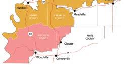 Every year, Southwest Electric works diligently to maintain its rights-of-way. With over 4,200 miles of power lines in rugged terrain, keeping the trees trimmed and away from the lines is necessary work to maintain and improve system reliability. Typically, contractors are needed to help spray herbicides, cut trees and limbs and remove debris from our lines. This work is often initiated at the substations and is cleared to the end user, which is you, the Member. This year, plans have been made to trim or spray 1,390 miles of line in the areas of Cloverdale, Crosby, Kingston, Port Gibson, Utica and Woodville, as indicated in the shaded areas of the map. Please be mindful of contract crews working in these areas over the course of the year.