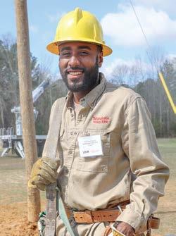 “I knew I wanted to be a lineman from family and friends in the industry. I like working with my hands, being outside, and doing something di erent every day,” Adams said.