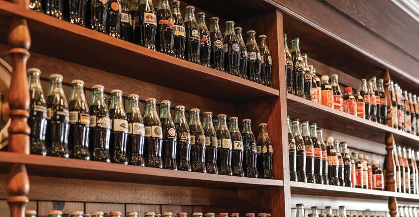 The restored candy store and o ce area will take you back to a simpler, sweeter time with furnishings and displays from the 1890s. Visitors can buy ice cream, fountain and bottle Cokes, Coke floats, and a wide selection of Coke souvenirs.