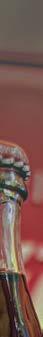 One of the glass displays holds the history of Coca-Cola in bottles, including the di erent sizes and shapes of the glass bottles throughout the years.