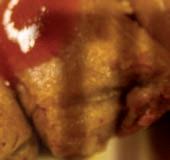 the filling and forms a cylinder or package. Fold the bottom under to close the bottom and complete the package. Place the completed tamales in a single layer on a baking sheet. Repeat until all dough and filling is used.