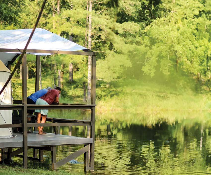 Whitt’s nature retreat provides a full hotel-like set up in each room — beds with lavender infused memory foam mattresses, air conditioning and heat, fans, co ee pots and co ee, private fire pits, and electricity. But, she said, a visit is still camping.