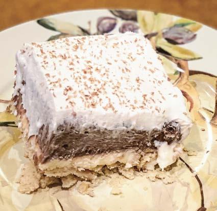 Use remaining Cool Whip to top the pudding. Shave a chocolate bar over the top of the dessert to make it pretty.