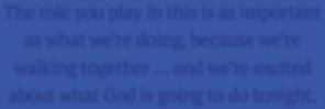 The role you play in this is as important as what we’re doing, because we’re walking together … and we’re excited about what God is going to do tonight.