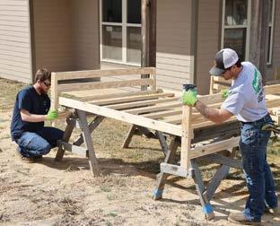 During that workday, Southwest Electric employees built beds for the camp cabins.