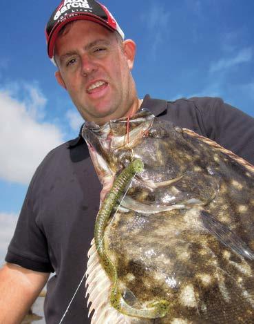 A live shrimp under a float o ers a great way to catch flounder. Toss it along a weedy shoreline and let the current carry the bait naturally. Occasionally, pop the cork to make a surface commotion that mimics a fish striking bait. Live minnows also make great flounder baits, either fished under a cork or on the bottom. Flounder might also hit other natural baits.