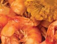 Tips • Add a splash of apple cider vinegar to the boiling water to help the shrimp shells slip o more easily. Don’t toss the broth; save a cup or two and drizzle it over the platter, or use it as an au jus.