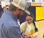 C. Meter Technician Ahustyn Smith showed the students the meters used at their homes. D. First Class Lineman Justin May helps a student tie a power line to an insulator.