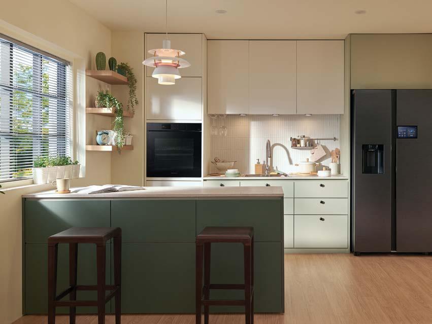 The second-biggest share of your home’s electricity powers appliances, from your refrigerator to your water heater. Smart appliances use Wi-Fi and high-tech sensors to operate more e ciently. A smart washer can sense the size of your load and adjust the water and cycle times accordingly. Smart refrigerators can warn you when the kids leave the door open. And smart water heaters don’t waste energy by heating water while you’re asleep.