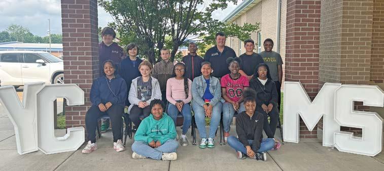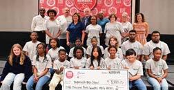 Taylorsville Attendance Center students, faculty, and board members are pictured with Darnell Mo ett, Southern Pine director of community development and Caroline Nurkin, Pinebelt Foundation director of operations.