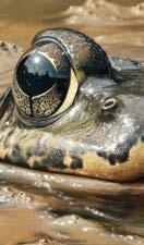 When frogging on foot, work in teams. Each person walks along a di erent side of the waterway. After spotting a frog, one person shines the light into its eyes while the other sneaks up from behind to catch the frog.
