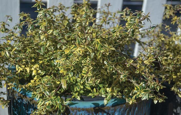 Miss Lemon Abelia is another exceptional evergreen shrub that adds color and texture to the landscape. Its standout feature is variegated foliage, with bright yellow margins surrounding rich green centers to create a luminous e ect year-round.