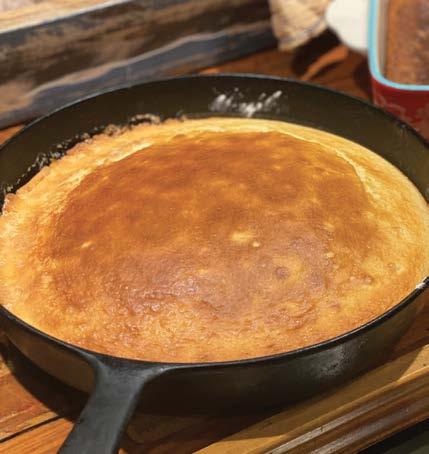 Outer Banks Cornbread is classic cornbread, but swimming in butter. I usually double the recipe. You might need to, too. The second recipe calls itself cornbread, but there’s not a lick of cornmeal in the recipe. It’s basically a sticky pecan cake, but the texture is a little coarse like cornbread. My final o ering is cornbread, but it’s called a cake. Letting it cool brings out the cornbread flavor. I love it with white bean soup. And, at the risk of losing my Southern Belle card, I’ll bet even my mom would like it!