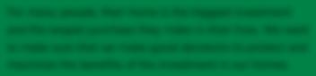 Q AFor many people, their home is the biggest investment and the largest purchase they make in their lives. We want to make sure that we make good decisions to protect and maximize the benefits of the investment in our homes.
