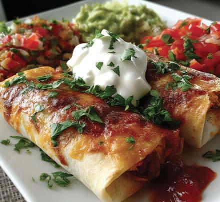 To assemble: Lay flour tortillas a few at a time on a flat surface. Place ¼ cup of chicken filling on one edge of each flour tortilla and roll over once. Sprinkle with 2 tablespoons of shredded cheese. Fold both sides in and continue to roll tortilla until closed around the fillings. Seal rolled edge with a toothpick and place seam-side down on a parchment lined baking sheet. Continue until all tortillas are done. Spray with cooking oil spray.