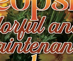 The daisy-like blooms have goldenyellow petals with a warm, bronze-red center that gradually fades outward. UpTick Gold and Bronze forms a tidy mound. When it’s in full bloom, the colors seem to glow, especially in the late afternoon sun.