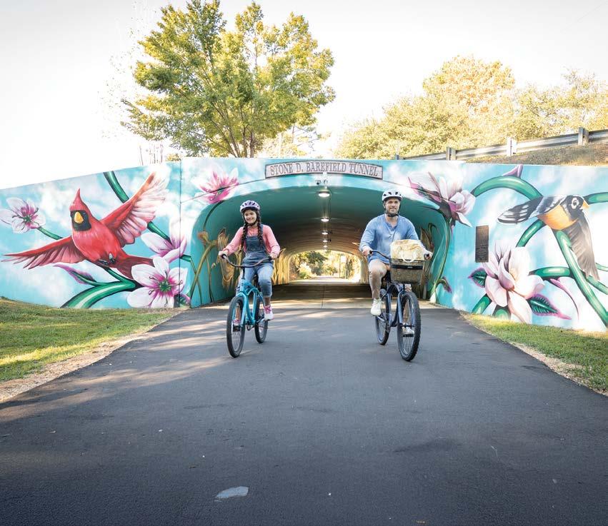Cyclists peddle their way down the Longleaf Trace near Hattiesburg.