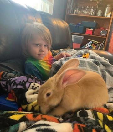 3. Jr. relaxes on the couch with his bunny friend, Benjamin. Photo submitted by Grandpa Dave Lorenz, a member of Riverland Energy.
