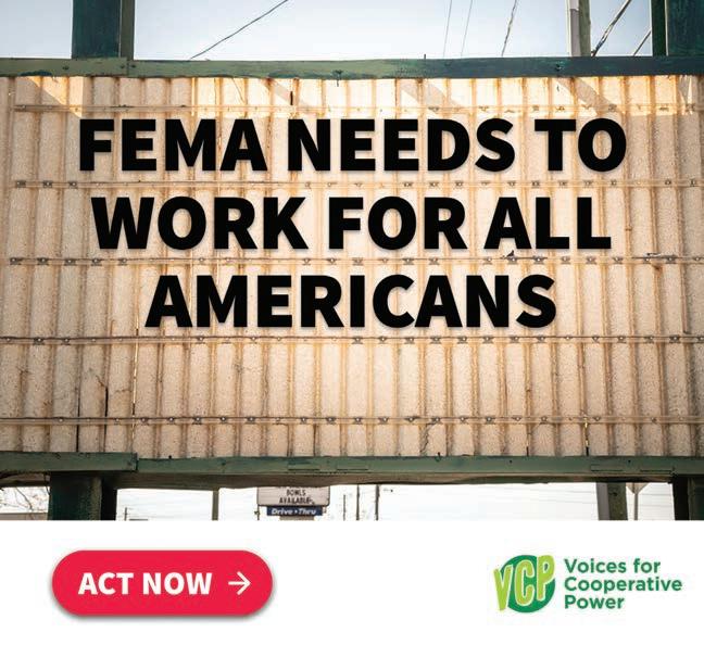 This is one reason your local cooperative leaders are supporting FEMA reform in Congress. H.R. 4669, the Fixing Emergency Management for Americans (FEMA) Act of 2025, is legislation in the House of Representatives that would streamline and expedite the delivery of public assistance disaster relief funds. Having passed the House Transportation and Infrastructure Committee last September by a vote of 57–3, the bill would speed up aid, allow co-ops to rebuild their systems stronger, and reimburse co-ops for the interest paid on loans to repair their systems while awaiting FEMA funding.