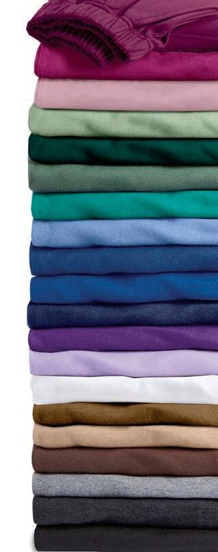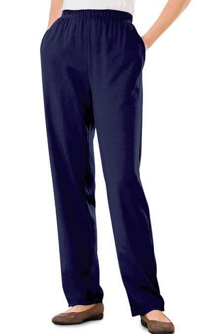 Covered elastic waist. Side pockets. Cotton/poly knit. Machine wash.