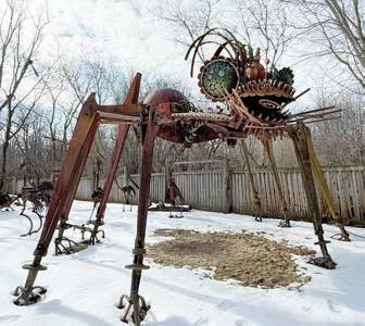 sculptures, runs “paint parties,” and, during Evermor’s health decline, drove him between the nursing home and the worksite so he could keep welding with his right hand after losing use of the left. “She was there every single day,” Kottler said. “She made it possible.”