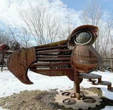 A FANCIFUL WORLD OF GIANT BIRDS, COSMIC MACHINES, AND INTERGALACTIC LORE AWAITS AT THIS ROADSIDE SCULPTURE PARK.