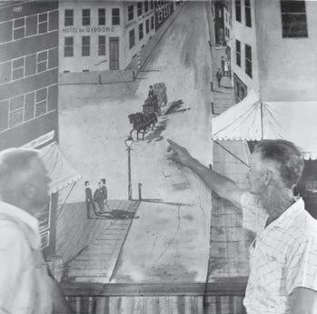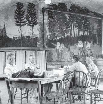 We rst covered Ernest Hüpden’s Painted Forest 68 years ago in the Wisconsin REA News Above center: Leo Thompson was identi ed as pointing to one of the murals. Above right (as it read in 1957): Mural covering end wall of Woodland town hall towers over township board of review as it meets to review assessments. The entire interior of the hall is covered with murals painted by an itinerant painter named Ernest Hüpeden in 1898. The hall is located in Valton, a village in northwestern Sauk County. Left to right in the picture are Leo Thompson, Rt. 1, Wonewoc; John Mortimer, Rt 1., La Valle; Isadore Miller, Rt. 1, Wonewoc; and Ray Gibbons, Rt. 1, La Valle. Gibbons is town chairman, Mortimer is clerk, and the other two are supervisors. All four are members of the Vernon Electric Co-op, and Valton also is on Vernon lines.