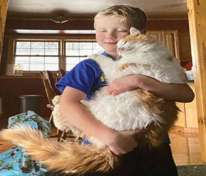 3. Cotton Candy purrs loudly during snuggles with Tayvian. Photo submitted by Susan Kamrowski, a member of Riverland Energy.