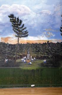 “Hüpeden was a known drinker,” said Wells. “He put a saloon in the mural, and the Woodmen didn’t make him paint it out. My theory is that it was the Woodmen themselves keeping Hüpeden in drink.”