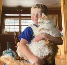 3. Cotton Candy purrs loudly during snuggles with Tayvian. Photo submitted by Susan Kamrowski, a member of Riverland Energy.